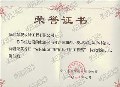 榮獲首屆安陽(yáng)城市防護(hù)林優(yōu)質(zhì)工程獎(jiǎng)