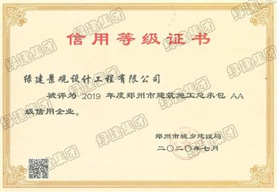 2019年度鄭州市建筑施工總承包AA級(jí)信用企業(yè)