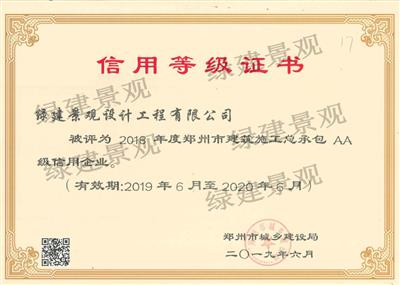 2018年度鄭州市建筑施工總承包AA級(jí)信用企業(yè)