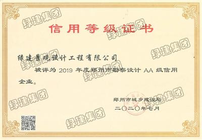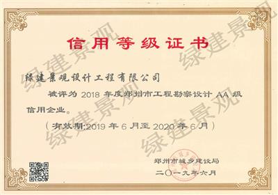 2019年度鄭州市勘察設(shè)計(jì)AA級(jí)信用企業(yè)