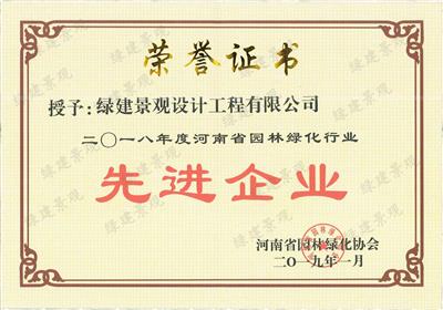 2018年度河南省園林綠化行業(yè)先進(jìn)企業(yè)獎(jiǎng)