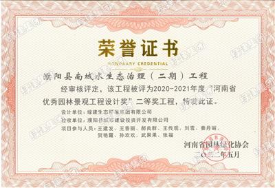 濮陽縣南城水生態治理(二期)工程 2020-2021年度河南省優秀園林景觀工程設計獎二等獎