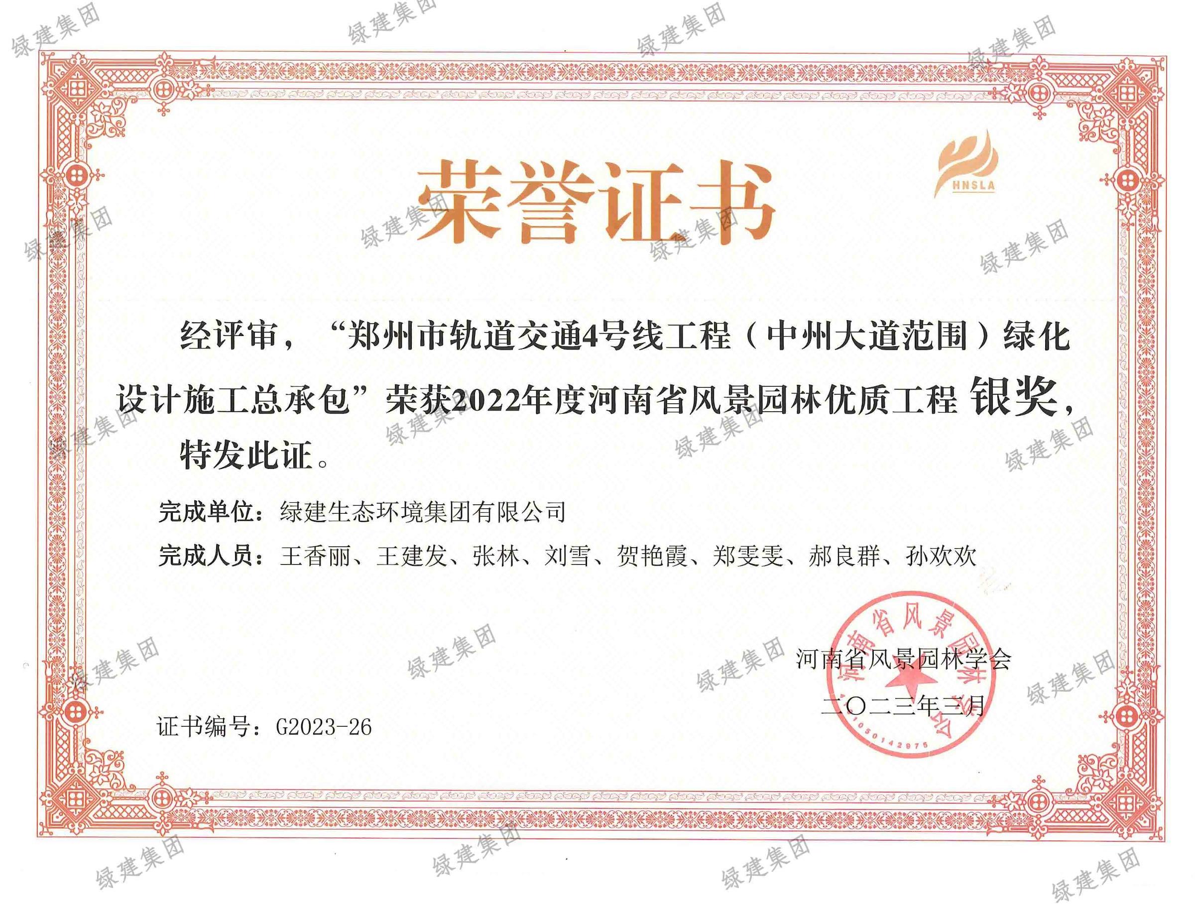 22年度交通軌道4號線優(yōu)質(zhì)工程獎-銀獎