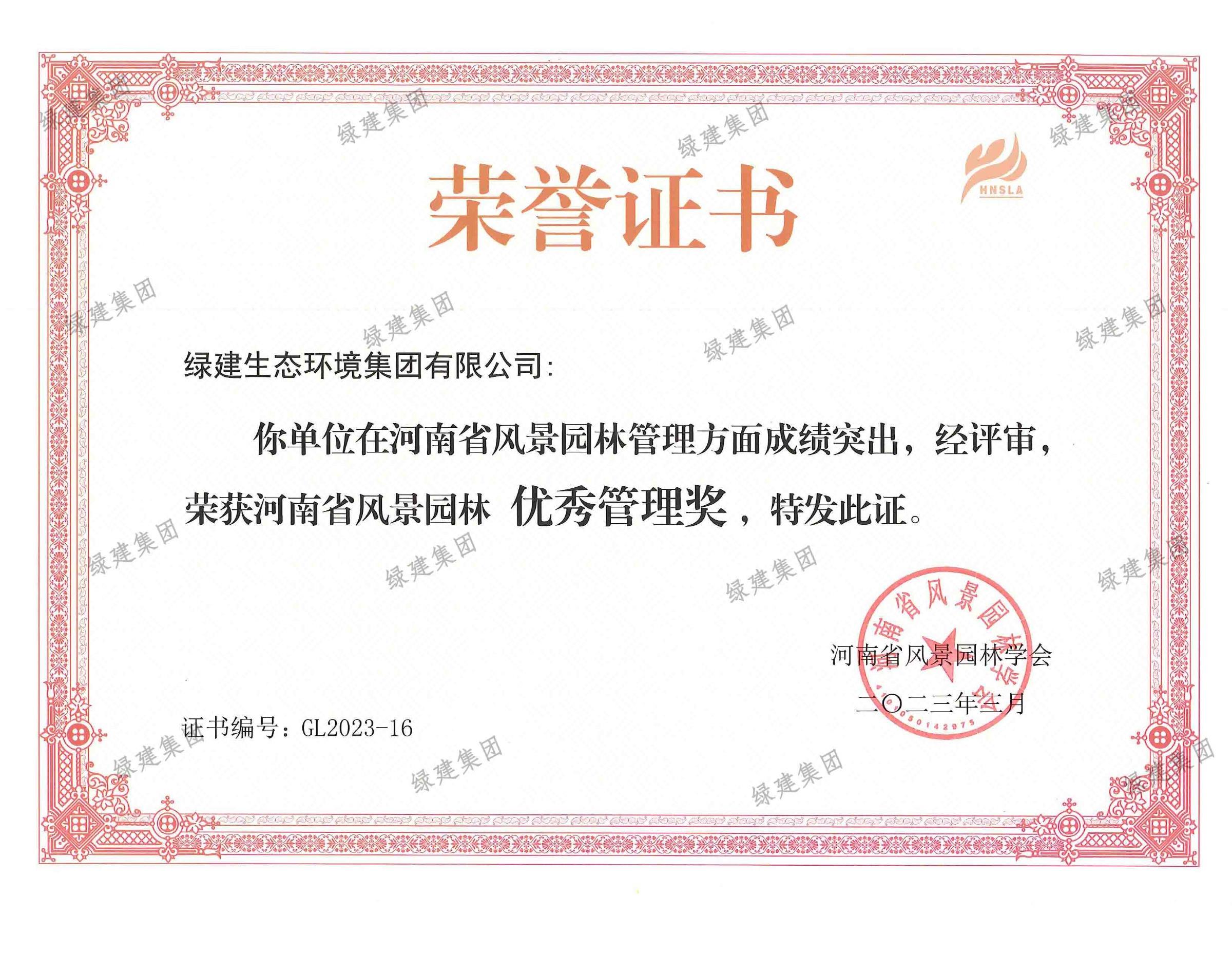 2022年度河南省風(fēng)景園林優(yōu)秀管理獎