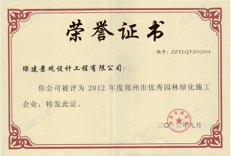 2012年鄭州市優(yōu)秀園林綠化施工企業(yè)