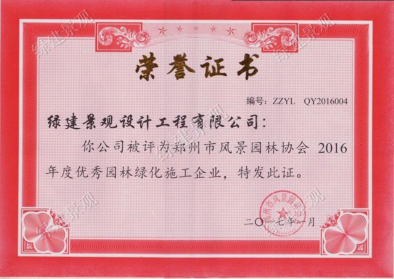2016年鄭州市優(yōu)秀園林綠化施工企業(yè)