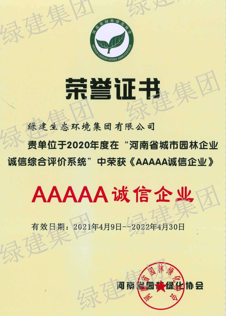 2024-2025年度河南省園林綠化協會AAAAA誠信企業