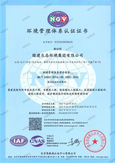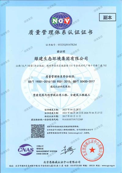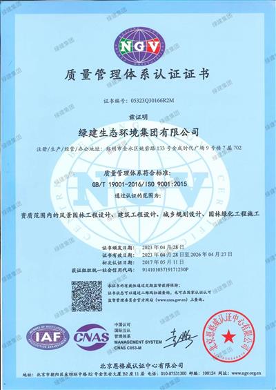 質量管理體系認證證書(園林綠化設計、建筑設計、城鄉規劃設計)