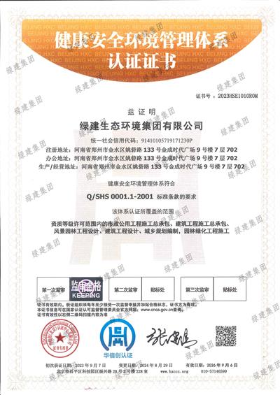 HSE健康安全環境管理體系證書(0001.1-2001)